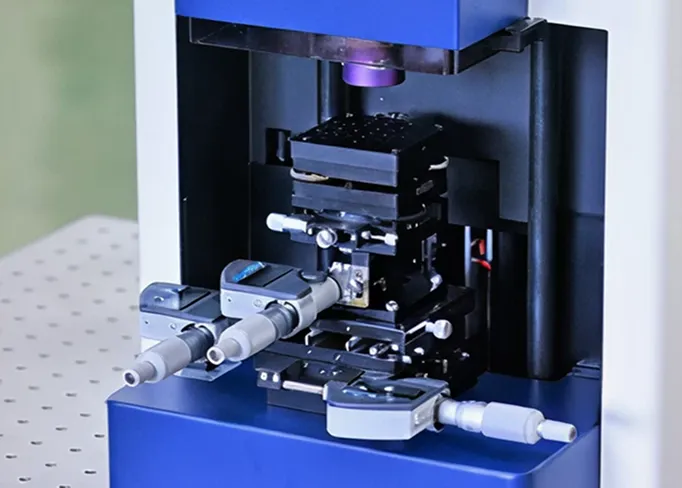 フローティング構造を採用することで振動を抑制し、防振台不要・真空吸着用エア源内蔵を実現。導入に際して障害となりやすい圧縮エア等のユーティリティを取り除きました。お客様にご用意いただくのは机と100V電源のみです。